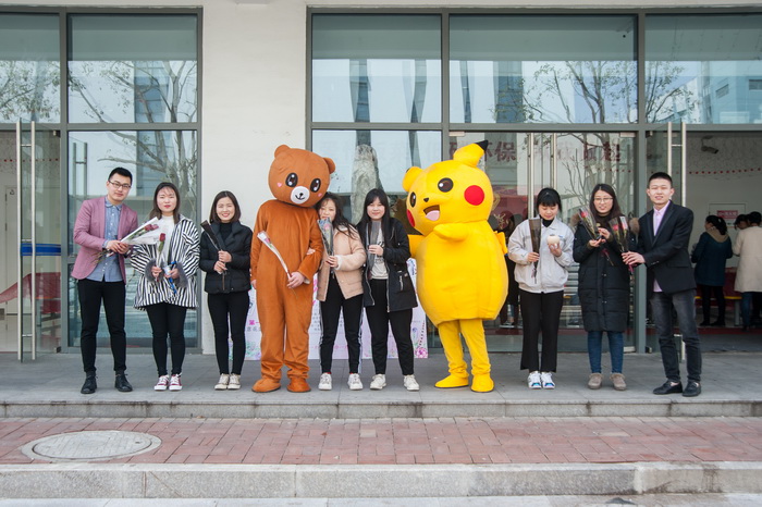 领完礼品后,再去食堂二楼“女神专窗”用个餐,在男神们羡慕的眼神中排着专属队,吃完饭品品酸奶,在萌宠“皮卡丘”、“布朗熊”的簇拥下欣赏着玫瑰,不亦乐乎。
