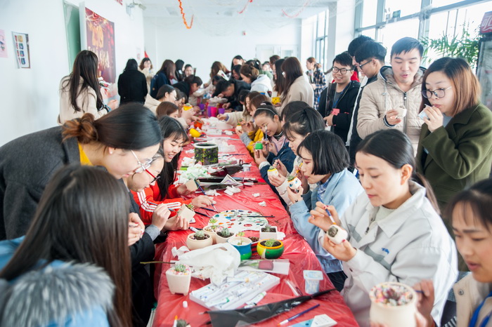 享受完这些惊喜还没完,多肉DIY种植才是今天的压轴大戏,天马行空的想象绘画,漂亮呆萌的小多肉配上自己手工绘画的小花盆,点水施肥后,200盆多肉在女神们的巧手下重获新生。