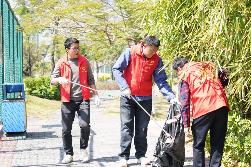 同日,共进电子坪山行政科组织开展以“志愿红守护生态绿,共建共享美丽园区”为主题的环保志愿服务活动,35名党员及职工志愿者参加。来自共进党委坪山第一、第二党支部的党员志愿者们以主题党日形式积极参与,分为两队对办公楼周边、停车场、绿化带、宿舍楼、食堂附近及园区围墙沿线等区域进行集中清理。志愿者们手持夹钳、垃圾袋,仔细清理烟头、纸屑、塑料包装等杂物,不放过任何一个卫生死角。经过约一小时的努力,园区环境焕然一新。