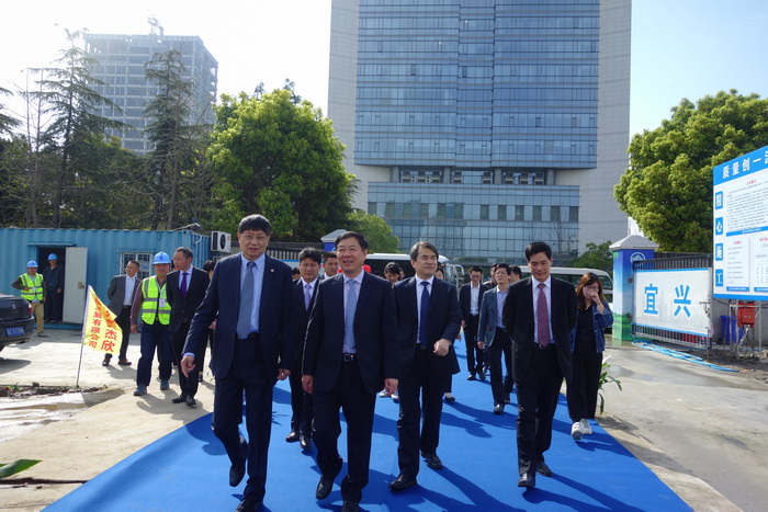 It was a bright and vigorous sunny day in spring. At 9 am March 29th, more than 30 people including officers from Taicang City Party Committee and the relevant Taicang departments led by the leadership including Wang Hongxing, Taicang Municipal Committee Standing Committee, Li Gang, Director of the High-tech Zone Management Committee, and Feng Yuliang, Deputy Director of the High-tech Zone Management Committee visited the construction site of T&W Science and Technology Building and congratulated the grand commencement of construction. Before the construction of the Science and Technology Building, it has been closely focused by the relevant leaders of the Taicang Municipal Party Committee and the Municipal Government. Moreover, it has received the strong support from the relevant units for the approval of land acquisition and approval to the approval of the entire process.