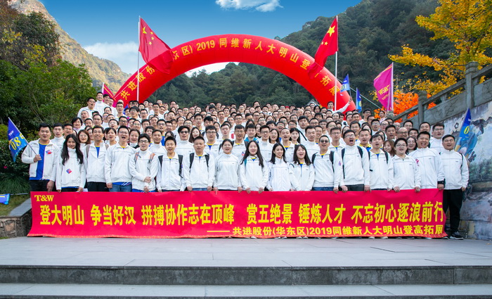 Climb Daming Mountain, be a true man, strive and coordinate and aspire to reach the top. Appreciate five unique scenes, temper talents, stay true to original aspirations and march forward by following the tide. In order to further gather strength, unify thoughts, carry forward the fighting spirit of Tongwei employees and promote new employees of Tongwei to gain a profound understanding of the enterprise culture, on the morning of November 9th, 226 new employees of East China Zone started from Shanghai or Taicang for Daming Mountain in Lin’an to attend the ninth Tongwei new employees’ mountaineering activity.