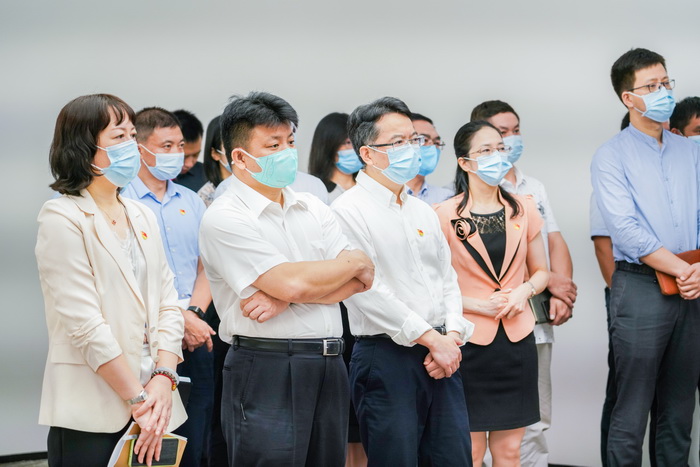 The leaders of Pingshan District Committee watched the company's promotional video in the exhibition hall for enterprise culture on the seventh floor of building four, and investigated and visited the party building position of the company afterwards. Through on-the-spot explanation and text pictures, all-in-one machine display screen, special display board and other forms, the development history of the company and the Party Committee, the organization construction and the characteristic highlights of party building are displayed in an all-round way. Li Yingzhong, Deputy Secretary of District Committee, Xu Guodong, Director of the Organization Department attached great importance to the company's party construction work, and asked about the implementation of the "Three Synchronization" of party construction (party construction survey, organization construction, guiding service) from time to time. Deputy secretary Li spoke highly of the company's mode of cross-appointment between senior executives and Party Committees, the company's philanthropic efforts to fulfill its social responsibility and invest in public welfare, and the company's specific practices of cultivating talents and caring for employees.
