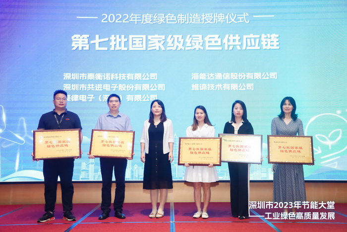 Recently, our company was honored with the title of National Green Supply Chain Enterprise. On the afternoon of 14th July, Gong Pusheng, the Dean of Intelligent Manufacturing Research of our company, attended the lecture on "Green and High-Quality Development of Industry" in Shenzhen Energy Saving Lecture Hall in 2023 and was awarded the "Seventh Batch of National Green Supply Chain" on behalf of our company by the Ministry of Industry and Information Technology of the People's Republic of China.