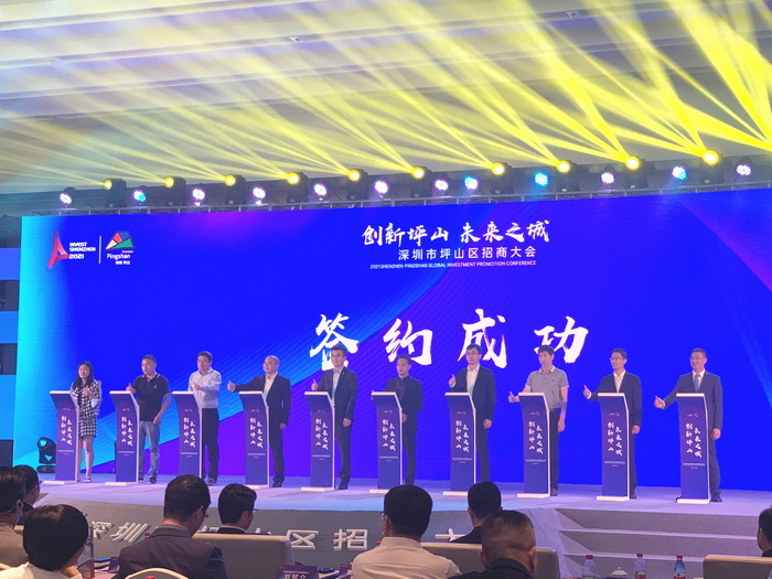 “The preferred place for a project in Shenzhen is Pingshan District.” On Nov. 5th, 2021, the launching ceremony for Shenzhen Pingshan Investment Attraction Conference of was held, and Yang Jun, Party Secretary of Pingshan District Committee sent enthusiastic invitations to massive entrepreneurs and investors. The spot of the investment attraction conference was crowded with magnates. Nearly one hundred famous enterprises gathered in this blessed entrepreneurial place and investment highland to know about this thriving place. There were 38 key industrial projects signed on the spot with an intended investment amount of 56.8 billion yuan. Of them, there is no lack of big enterprises of biological medicine and new generation of information technology. Our company signed major investment projects with Pingshan District.