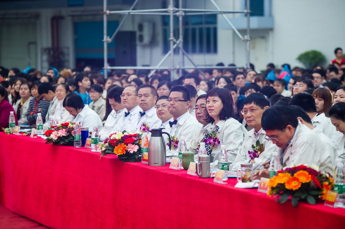 公司年会落幕之后,两地工厂为落实“升级转型,将同维建成具有新产品、新技术、满足市场需求的高端制造企业”目标,深化建设队伍,举办生产员工表彰大会暨相亲相爱活动。4 月10日17时,新桥同维2014年度生产员工表彰大会暨相亲相爱同维人大型文艺汇演在厂区隆重举行,大会表彰了181 名2014 年度优秀员工、48 名质量标兵、12 个先进班组和6 名感动同维年度人物,邀请了感动同维人物家属亲临现场,共享荣光。四千余名员工见证盛会。公司及工厂领导汪大维、胡祖敏、龚谱升、龙晓晶、漆建中、谌凯、范淑一、张炜、赵兴旺、温万星、曾宝山等出席了大会。