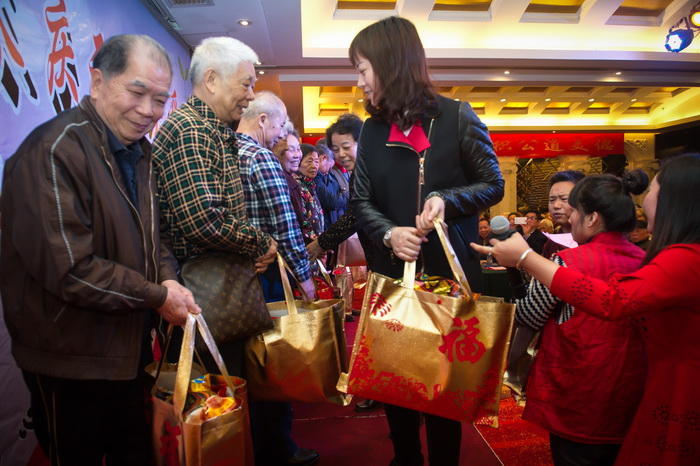 今年的“大病关爱”对象,除了200名脑中风高危老人外,还包括了春节期间坚守工作岗位的50名医务工作者,基金会为他们送去节日的温暖。杜新燕主任说:首先感谢同维爱心公益基金会各位领导在百忙中参加今年的“大病关爱”活动,对同维爱心公益基金会给予高度评价,感谢同维爱心基金会这些年对老年脑中风患者的关爱。同维爱心公益基金会监事、共进股份工会主席漆建中说:“基金会‘大病关爱’活动已开展了几届,今年能为广大春节期间坚守工作岗位的医务工作者和在座的老年朋友们送上我们的新春祝福,送上我们的一份温暖,是很有意义的事。面对生活的逆境,我们需要坚强和勇气,医务工作者更需要多一点耐心和爱心,这样我们才能战胜困难,享受生命的高贵。我想,有这么多优秀的医务工作者的辛勤工作,有你们‘不放弃,不抛弃’的乐观态度,我们的生活一定会更加美好。”同维爱心公益基金会演员代表为老年朋友表演了歌伴舞《迎春花》、小品《朋友圈》。活动最后,龙总、漆总和嘉宾为大家发放节日礼包。