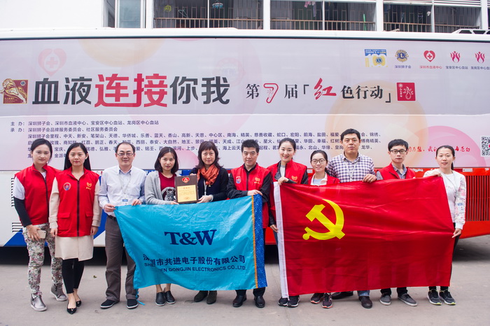 3月15日上午,深圳市血液中心的采血车开进公司蛇口总部,为公司员工展开一年一度的献血活动。由公司党委蛇口各支部成立的党员义工服务队,现场组织献血活动,他们身着义工红马甲,成为一道亮丽“风景”,展现了共产党员的良好风采。 今年的献血活动,得到公司员工的大力支持,献血量高达11500毫升,许多没来得及报名的员工也参与了献血,有的还是第一次献血,他们对公司“回馈社会”的文化理念高度认同。据悉,公司自从1999年组织员工参加义务献血以来,采血量高达256000毫升,体现了共进股份高度的社会责任。