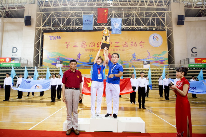 最后,董事长汪大维致闭幕词。汪总说:所有运动员在赛场上展示青春活力,都使出了洪荒之力,有的打破了过去的纪录。感谢运动员顽强搏取和精彩付出。感谢组委会和人力行政中心前期准备、现场安排和悉心的后勤保障。在此还特别感谢新桥同维的小伙子小姑娘们的开幕式表演。他们将公司的成长和发展融会贯通到团体操表演中,生动地呈现了公司发展历程和拼搏的精神。公司9000多名员工,限于条件,只有一部分人报名参赛,本届有320名运动员参赛,可能是一个小小的遗憾。我要告诉大家一个好消息,公司很快就会有一个9000多名员工可以参加的运动盛会。这个运动盛会,就是我们二次创业,就是我们的百亿目标。公司通过二次创业争取在2018年赢得百亿产值,也是一场运动会。这场运动会既需要拼搏进取的精神,也需要我们打破过去的思维和做法,以“四新”为纲把公司推向一个新的高度。今天我们的四地健儿在运动会取得了圆满成绩,我相信,全体健儿和所有同事也能在二次创业这场运动会上取得更大的成绩。