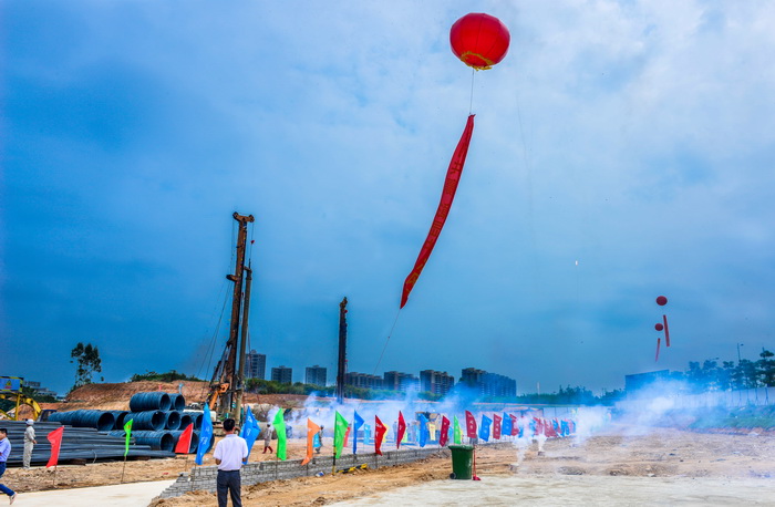 自今年6 月14 日,通过深圳市规划和国土资源委员会坪山管理局批复,这片厂区建筑即将以“同维”命名。通过基建项目组前期的奔波和筹备,该项目已通过多项批准,万事俱备,只等一声开工号令。正逢国庆佳节前夕,仪式现场喜气洋洋,欢快的开工鞭炮响彻园区,董事长汪大维、总经理唐佛南和各位嘉宾隆重出席了开工典礼。唐总、汪总等领导在主席台宣布正式开工,三台打桩基设备同时开工。随着设备破土动工,共进股份坪山工业厂区掀开了新的篇章,将载入同维发展史册。