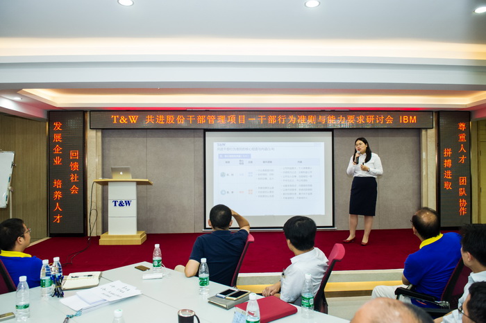 整整三天的会议议程排得满满当当。24 日,汪总首先致开幕词。当天IBM顾问和全体高管举办了关键任务与干部绩效研讨会和干部行为准则与能力要求研讨会。下午,唐总主持召开10 月份高管例会。接下来的两天时间,17 个经营单位分别汇报2017 年度计划。其国深圳无线应用产品线、台湾同进公司、上海共进新媒体公司、深圳医兰达公司、新桥同维、太仓同维、新技术与发展战略研究室等经营单位年度计划经补充可通过审核。在致开幕词,汪总说:“作为同维的创始人,我们从未像这样严肃地对待过计划。因此今天我们要召开2017 年度预研会议。这在过去是未曾有过的。我和唐总年纪大了,还要给自己肩膀上加一个担子。这是一种严肃的责任。命中注定,到老了还要给自己加副担子。