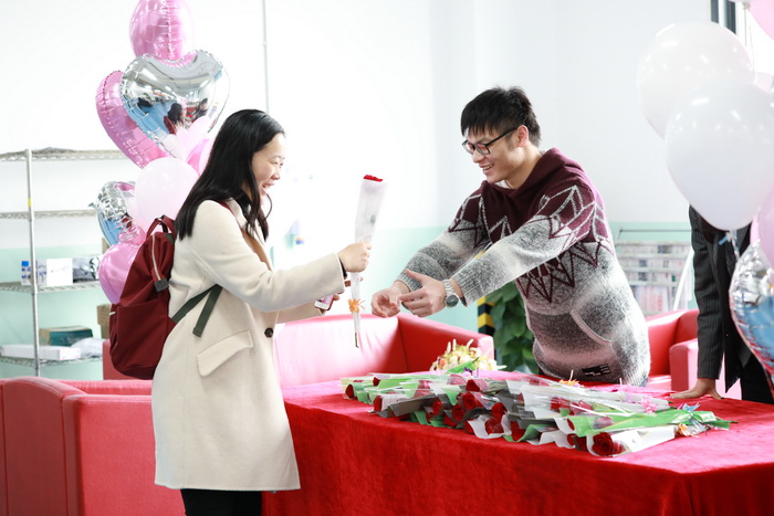此次礼品为永生花加绵柔围巾,寓意“围你所爱”,款式和颜色都比较受员工欢迎。活动现场气氛浓烈,大家领到礼品都争相在背景墙下拍照留念。