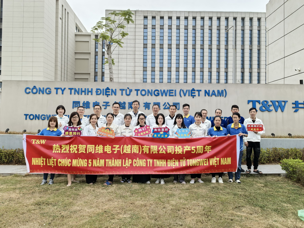 2024年12月13日,正值越南同维投产5周年纪念。5年前的今天,共进电子海外生产基地在越南海防落成投产。5年耕耘,5年收获,5年后的今天,拥有员工1500人,月产能达850K,年产值超20亿元的规模。从租赁简易铁皮厂房到拥有漂亮的自建园区,越南同维园区占地总面积已扩大到9.9万平方米。今天,二期厂房已投入生产,EMS业务的首位客户扫地机器人在如火如荼的生产中,预计每月产能将在50K。根据客户最新需求,已有6类机种将在2025年持续投产。一期厂房内,主营订单也在加班加点赶出货,第四季度月度产值喜创新高。