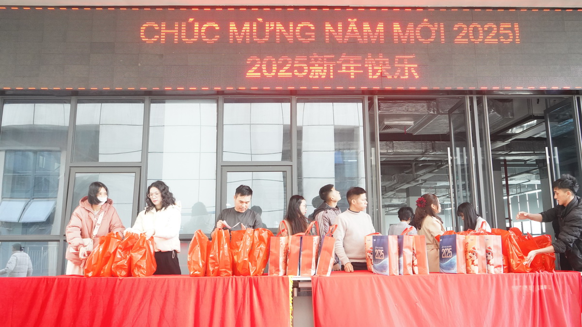 1月2日、3日,太仓和坪山分别向生产员工发放新年大礼包。公司顾问汪大维、副总经理龙晓晶为员工发放新年礼包,送上新年问候。1月4日,海宁同维洋溢着喜庆与温馨的氛围。第三经营体总经理王宏为员工发放新年大礼包,代表公司向大家表达诚挚谢意。1月18日,1月18日,越南同维工会组织发放员工新年礼包。越南同维工会主席阮氏绒、副主席陶氏青玄和人力行政中心总监于红星等人为大家发放。一袋袋包装精美的礼品整齐排列,员工们兴高采烈前来领取。
