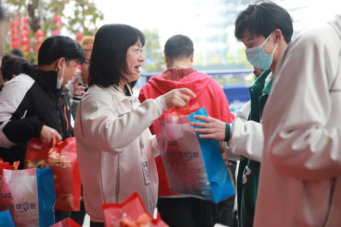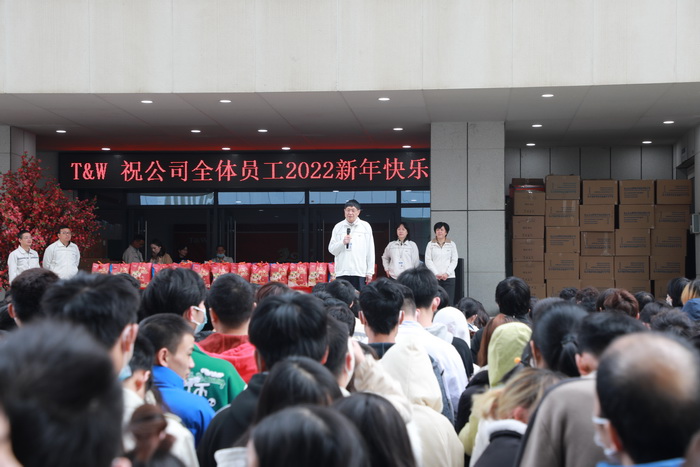 公司董事长汪大维、公司副总龙晓晶、人力行政管理中心总经理谌凯、华南网通副总经理陈春荣等公司领导来到现场为大家派发礼包。汪总现场致迎新贺词。他说:随着2022年的到来,大家除了能在今天领取到公司为大家派发的迎新小礼包之外,还将迎来三份大礼。第一份礼是:2022年1月1日开始,深圳市最低工资标准将由原2200元调整至2360元,全体员工底薪都将上调。第二份礼是:共进电子华南区生产中心、质量中心的一线员工将增加“一线作业补贴”,包含一线直接人力(P1~P2级)每人每月将享受600元补贴,一线辅助人力(P2~P3级)每人每月将享受200至300元的补贴。第三份也是最大的一份礼包,是由国家和党给大家发放的。2022年下半年我党将召开“二十大”会议,将提出,到2035年中国要建设成社会主义现代化国家,产值将翻一番,国民收入也将翻一倍。到2049年中国将建设成社会主义强国,国民的收入、生活水平也会水涨船高。