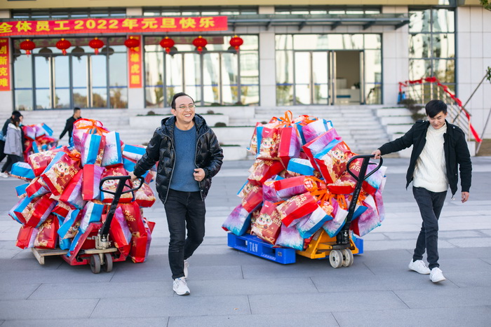 12月28日早上,坪山工厂5栋一楼热闹非凡。员工们充满期待早早地排好队等待领取礼包。为感谢全体员工在过去一年里携手共进辛勤工作,公司特地在新年之际为全体员工派发迎新大礼包。此次太仓、坪山两地工厂活动,均由两地的小卖部赞助。
