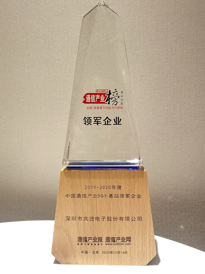10月14日,2020年中国国际信息通信展览会拉开帷幕,发布第十四届通信产业榜。共进电子荣获“5G小基站领军企业”、“通信设备技术服务商百强” 、“5G射频产业30佳”等诸多奖项。
