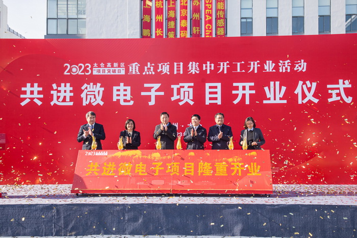 1月31日上午,2023太仓高新区“项目突破日”重点项目集中开工开业活动举行。其中共进微电子等7个项目开业。太仓市委书记汪香元,市长胡卫江出席活动,见证共进微电子项目开业。苏州共进微电子技术有限公司成立于2022年1月,是上海共进微电子技术有限公司的全资子公司。2022年该公司改造升级了1.8万平方米的研发中心和生产基地,项目计划总投资9.8亿元。